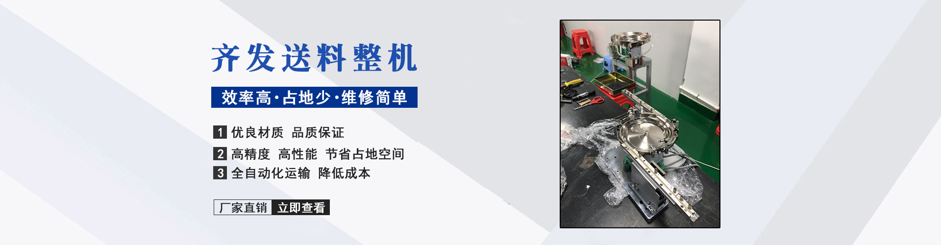 東莞市齊發(fā)自動化機(jī)械設(shè)備有限公司是一家集研究、生產(chǎn)和銷售服務(wù)及一體的專為客戶解決自動化送料方案的公司。